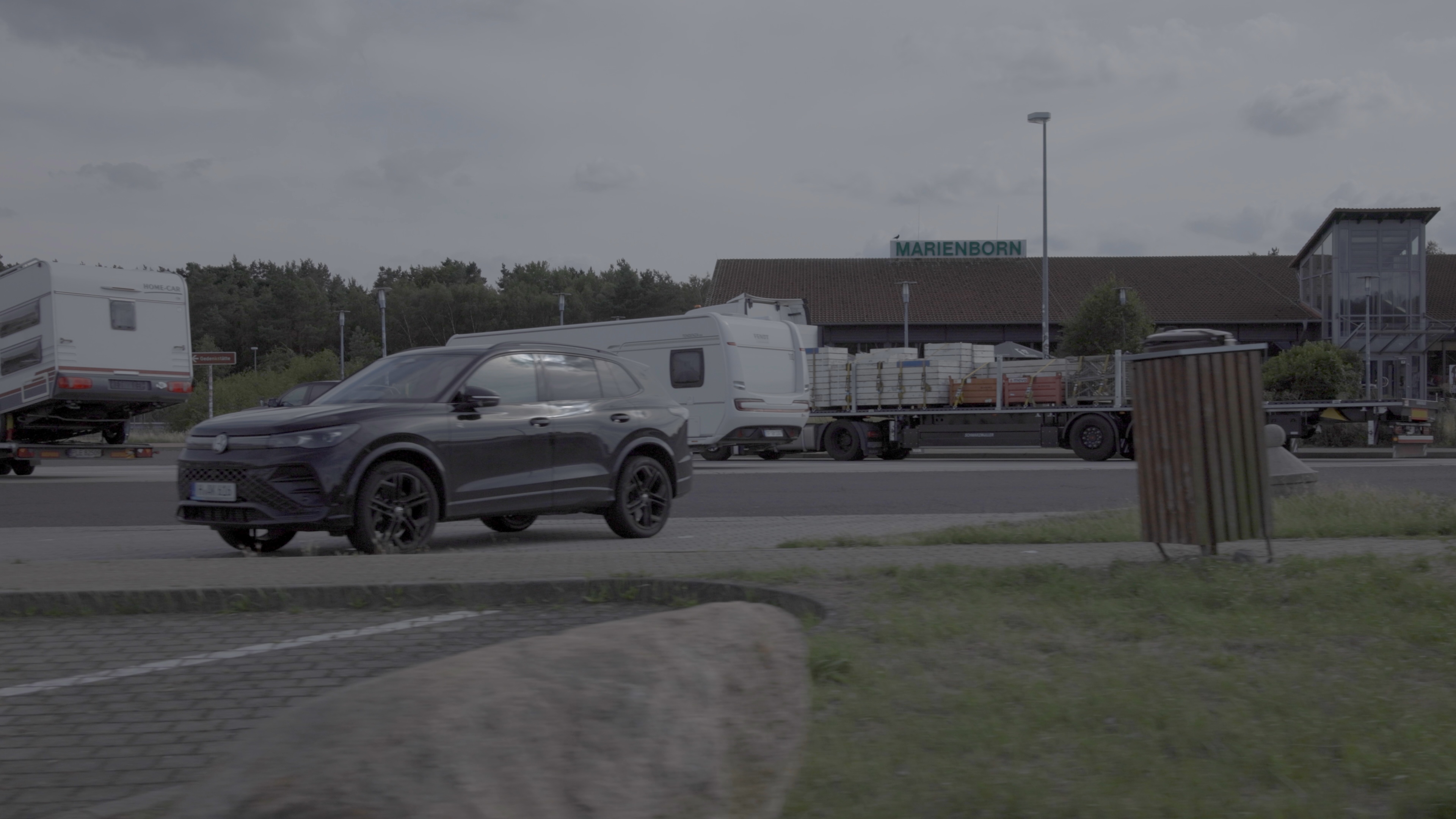 Der dokumentarische Kurzfilm Ortsteil Autobahn richtet die Aufmerksamkeit auf einen Ort, an dem gegenwärtige Gewalt hinter der Fassade einer vergangenen Grenze unbeachtet bleibt. Der Blick der Kamera bewegt sich entlang der weitläufigen Anlagen des einst größten innerdeutschen Grenzübergangs Marienborn. Die Tonspur aus vor Ort aufgenommenen Stimmen und Ereignissen trifft auf die Materialität der Vergangenheit. Während die Gedenkstätte für deutsche Teilung an die systematische Gewalt des SED-Regimes erinnert und aus ihr die Erzählung eines freien, geeinten Landes ableitet, zeigt sich einen Kilometer weiter eine andere Realität: Mitten im Wald, in den ehemaligen Kasernen der Grenztruppen sind Geflüchtete untergebracht – alltäglich konfrontiert mit gesellschaftlicher Ausgrenzung.